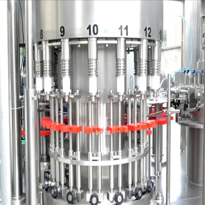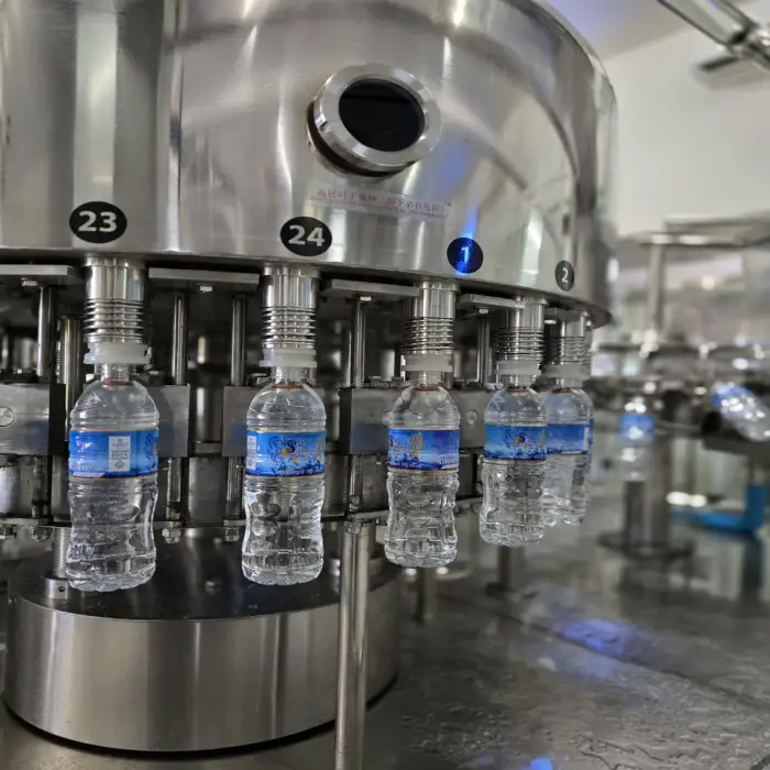 The machine can wash and fill various liquids such as water, juice, milk, oil, and beer.