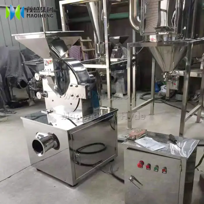 The machine can grind various grains, seeds, and beans, including rice flour, herbs, sugar, and salt.