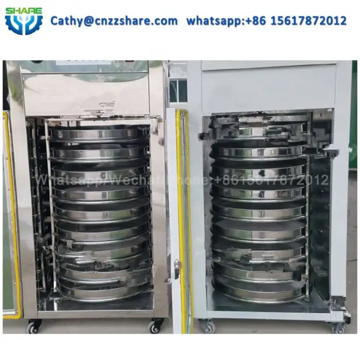 The drying machine is constructed from high-quality stainless steel, ensuring durability and easy maintenance.