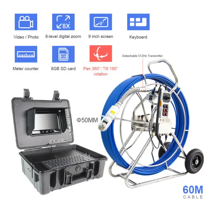 It is suitable for inspecting deep water wells, pipes, sewers, and other hard-to-reach areas, and is waterproof and weatherproof for outdoor use.