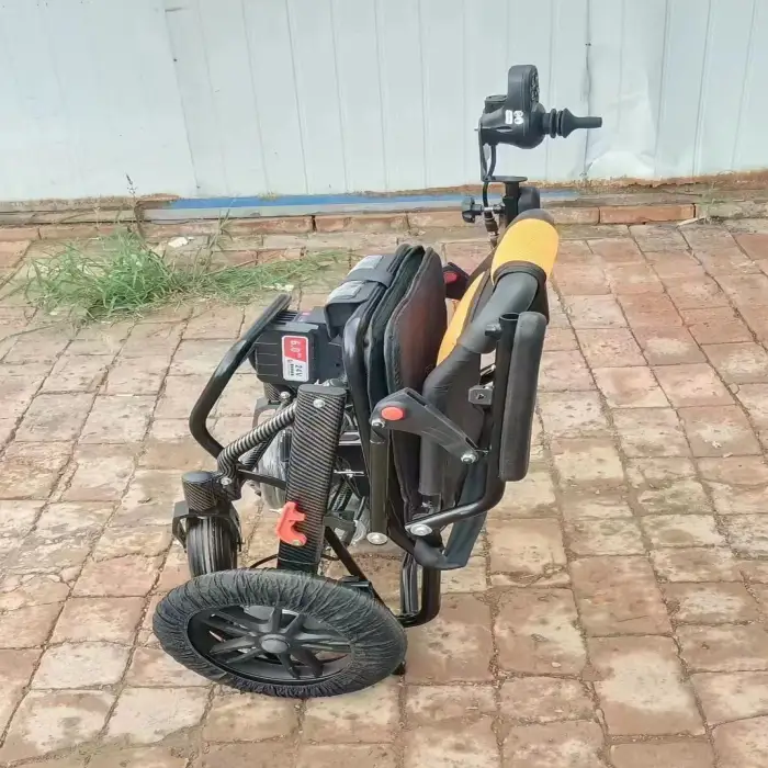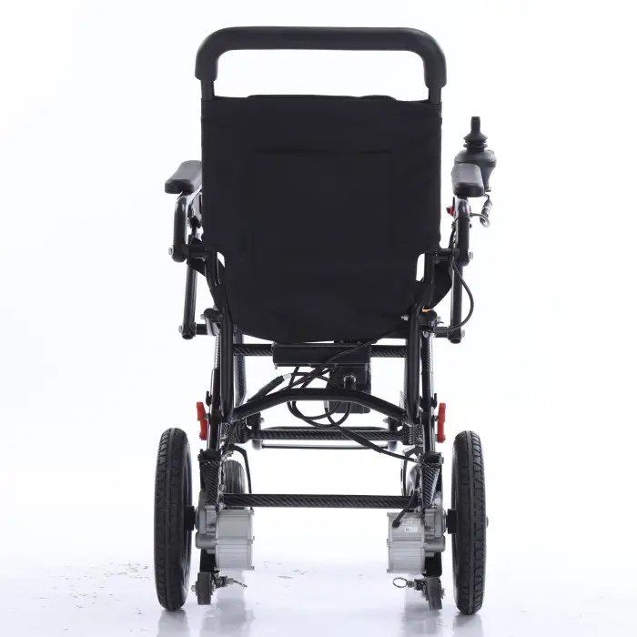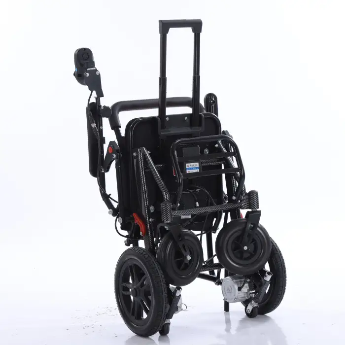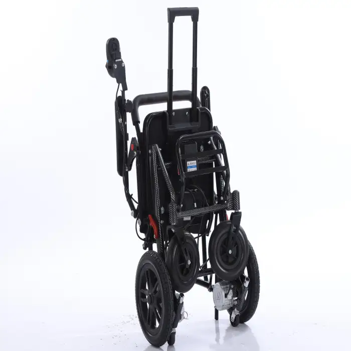 The wheelchair can be folded automatically for convenient storage and transport, making it user-friendly.