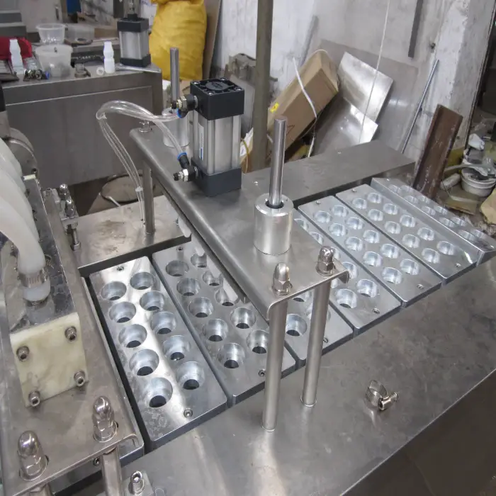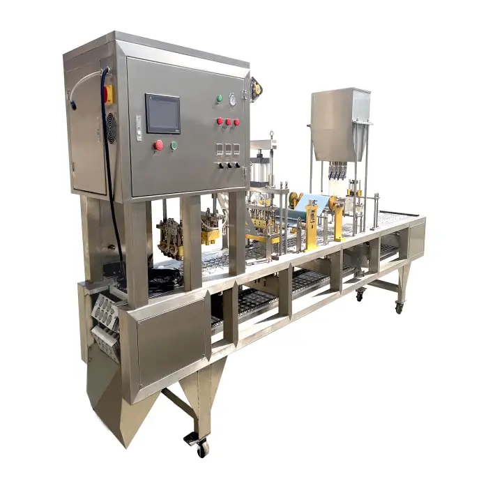 The machine uses heat sealing technology to securely seal the cups, providing a reliable and tamper-proof packaging solution.