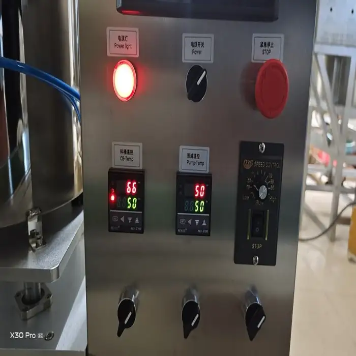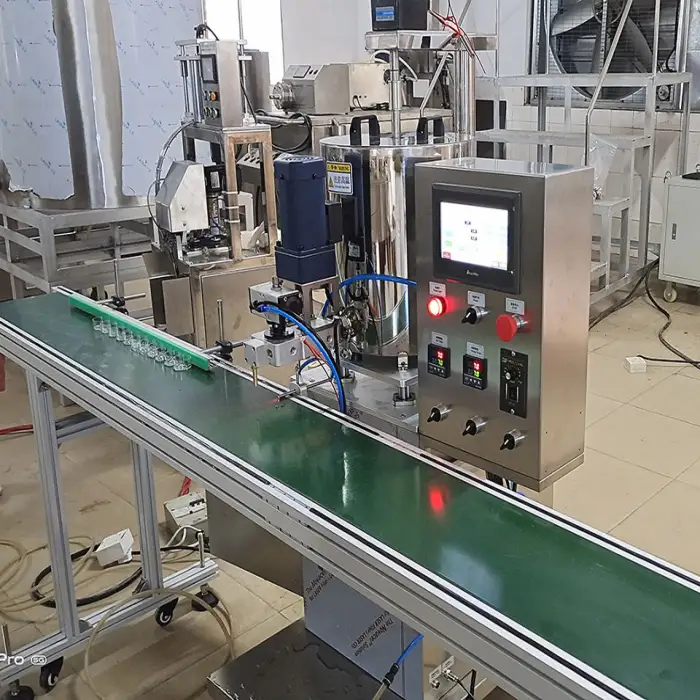 The machine is designed to fill various viscous liquids such as lip balm, petroleum jelly, hair pomade, and deodorant.
