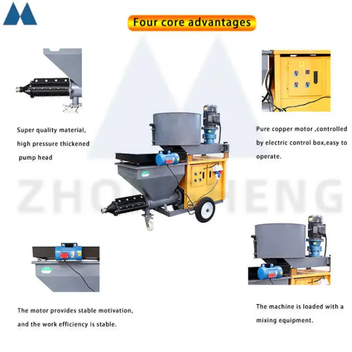 The High Efficiency Mortar Spraying Machine has a power rating of 4kw.