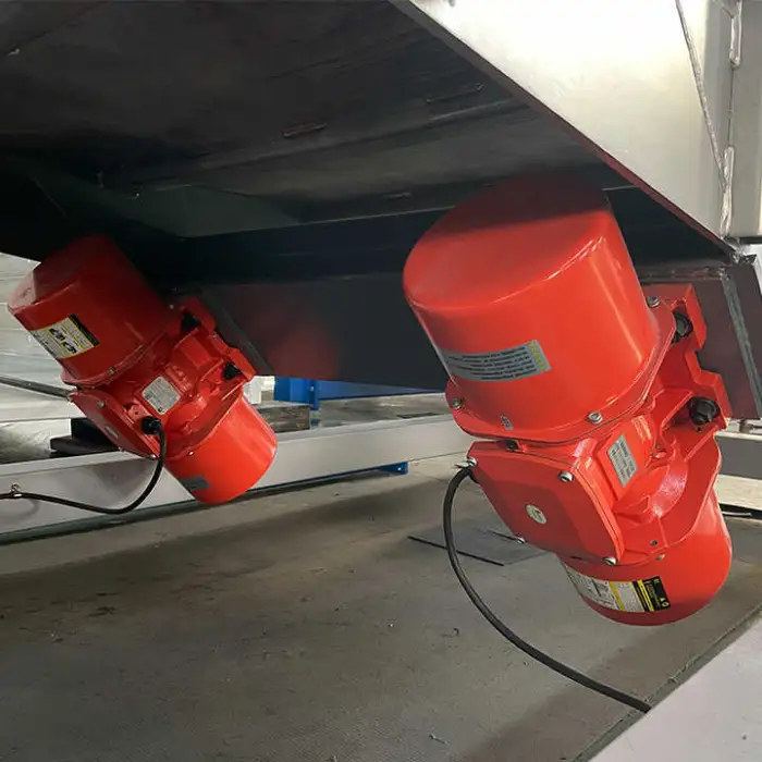 Vibrating screens produce mechanical noise and vibration. Use appropriate PPE (ear protection), install vibration isolation pads if required, secure guards around moving parts, and follow lockout/tagout procedures during maintenance.