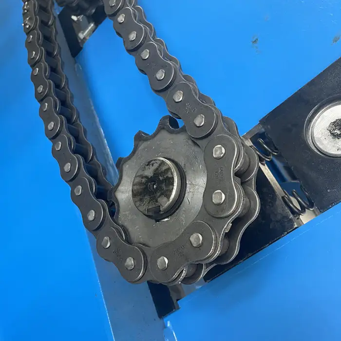 The automatic hydraulic cutting system allows for precise and efficient cutting of the steel plates, ensuring each piece is uniform and meets quality standards.
