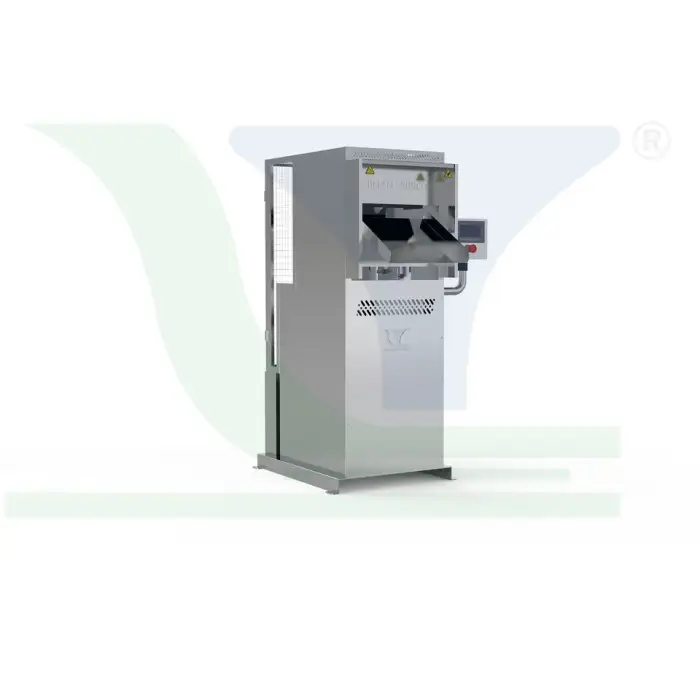 The machine is constructed from food-grade stainless steel, ensuring safety and durability.