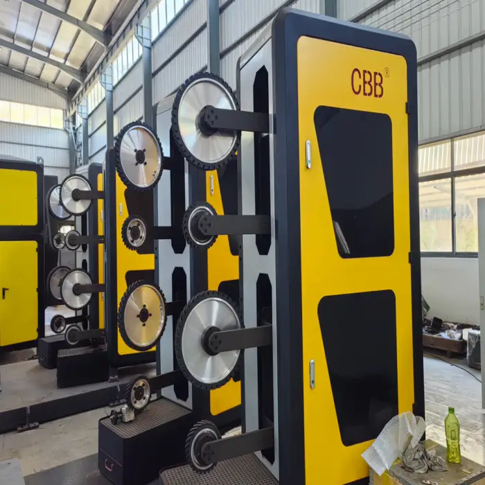 The core components include a Programmable Logic Controller (PLC) and a motor, ensuring reliable operation and control over the grinding and polishing processes.
