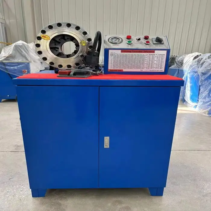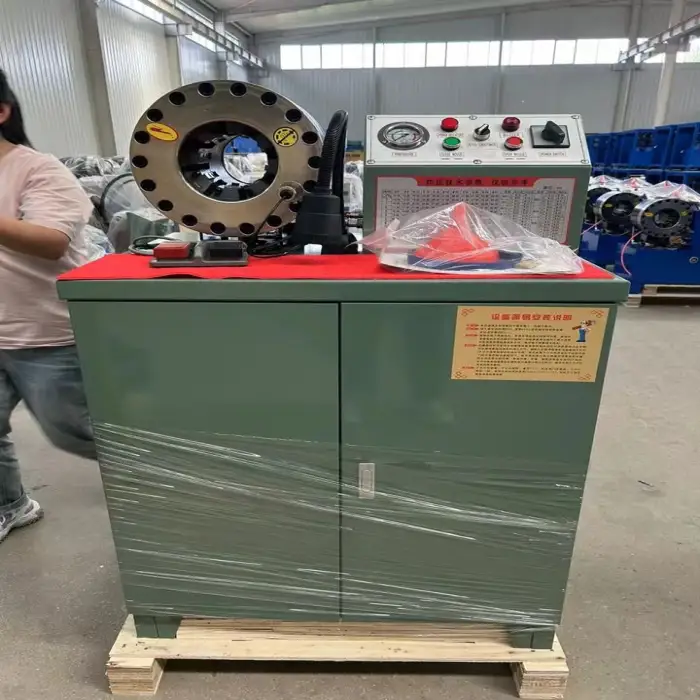 The High Pressure Hose Shrinking Machine is semi-automatic, providing ease of use while allowing for manual intervention.