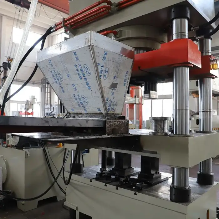 This hydraulic press is ideal for manufacturing salt blocks, pressing various metal products, and performing metalworking tasks in industrial settings.