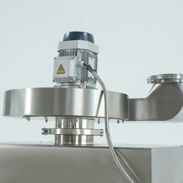 The feeder machine is constructed from high-quality stainless steel, ensuring durability and resistance to dust.