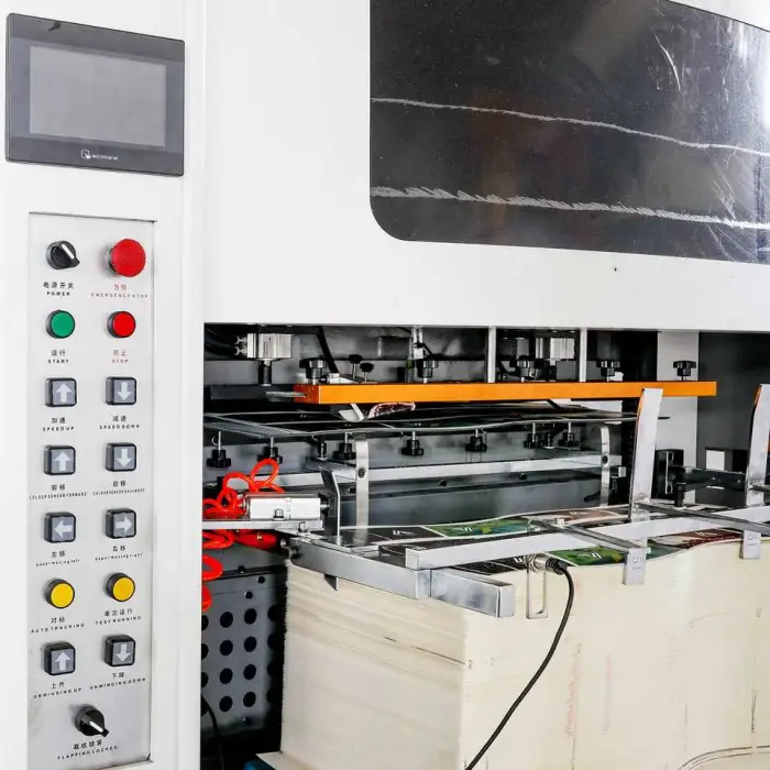 The machine is easy to operate with advanced PLC control, allowing for automatic cutting and creasing.
