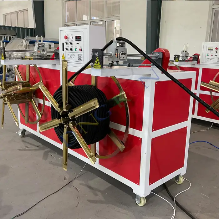 The machine is designed to process materials suitable for making hookah shisha hoses and corrugated pipes.