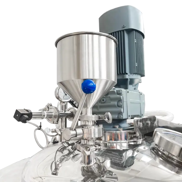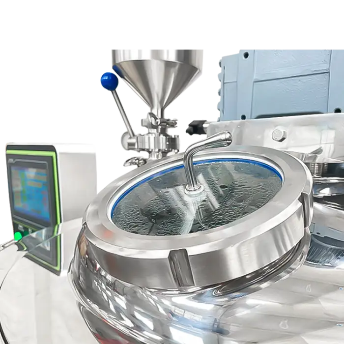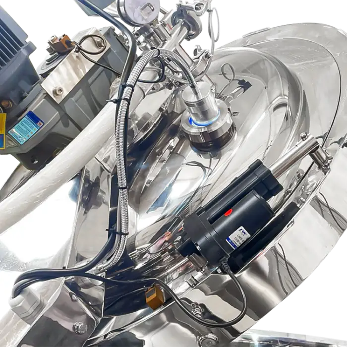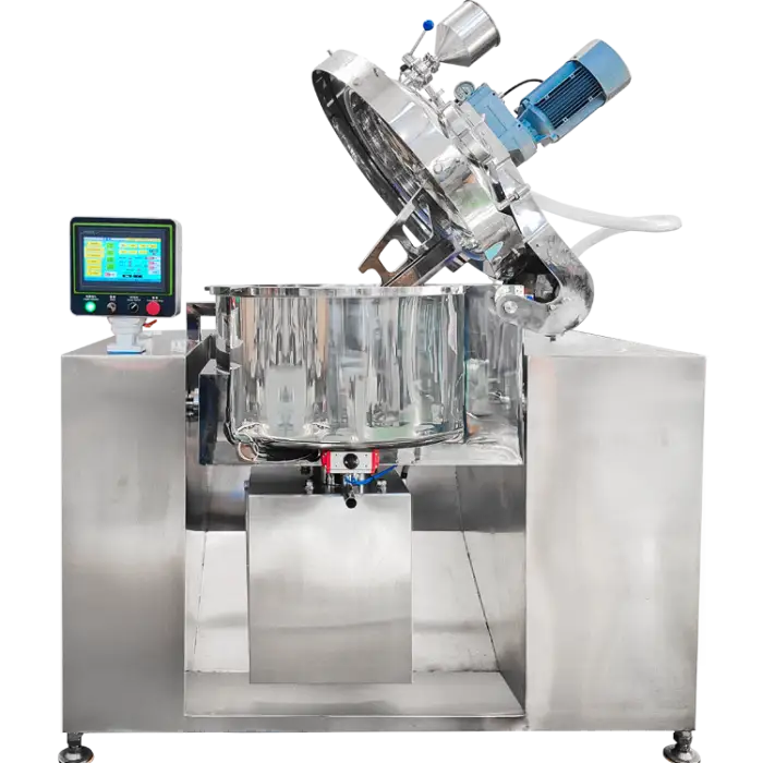 The kettle features a weep stirrer and a high-speed homogenizer for efficient and thorough mixing of ingredients.