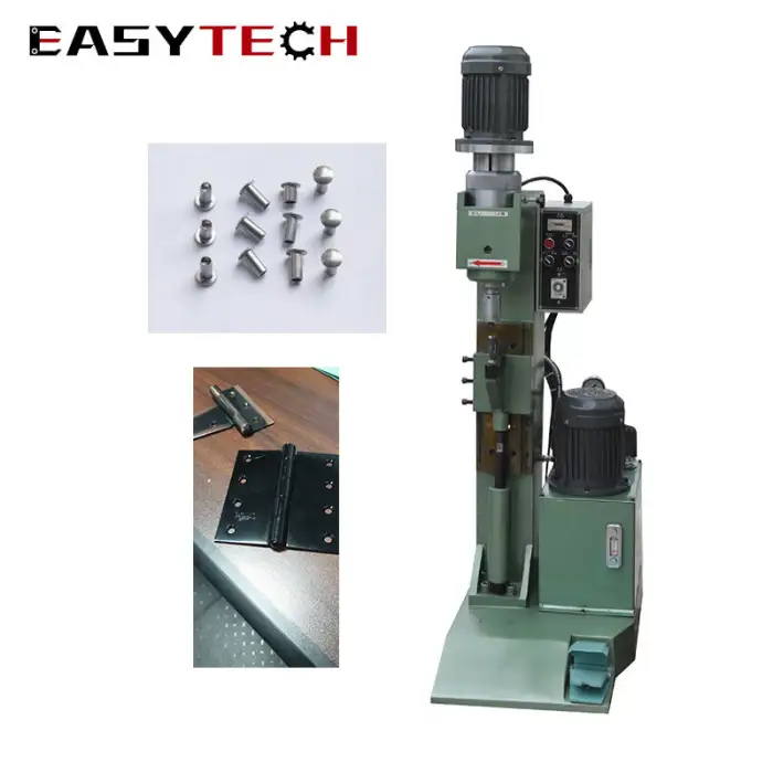 The machine operates on a pneumatic power source, ensuring efficient and effective riveting.