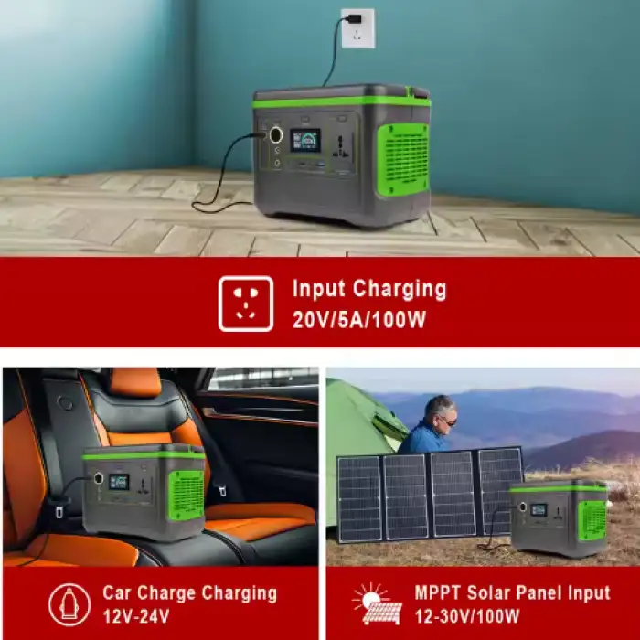 You can charge the power station using solar panels, car charging, or DC input.