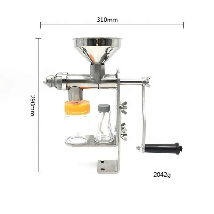 The oil presser is made of high-quality stainless steel, ensuring durability and safety during oil extraction.