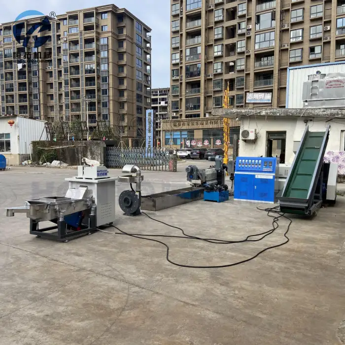 The double stage water cooling system efficiently cools the materials during processing, enhancing the overall recycling performance.