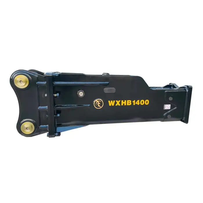 The hydraulic breaker features heavy-duty construction for enhanced durability.