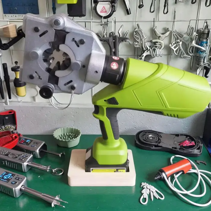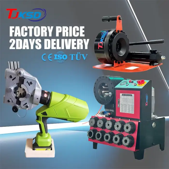 The Hydraulic Hose Press Tool Kit offers a maximum crimping force of 12 tons.