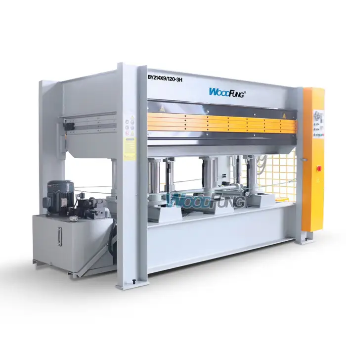 The Hydraulic Plywood Melamine Board Laminate Furniture Wood Door Flooring Woodworking Cold Press Making Pressing Presser Machine can handle a maximum pressure of 120 tons.