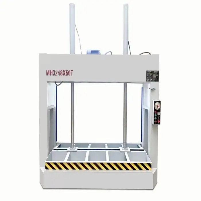 The Hydraulic Wood Press Machine has a maximum pressure of 50 tons, allowing for effective pressing of veneers.