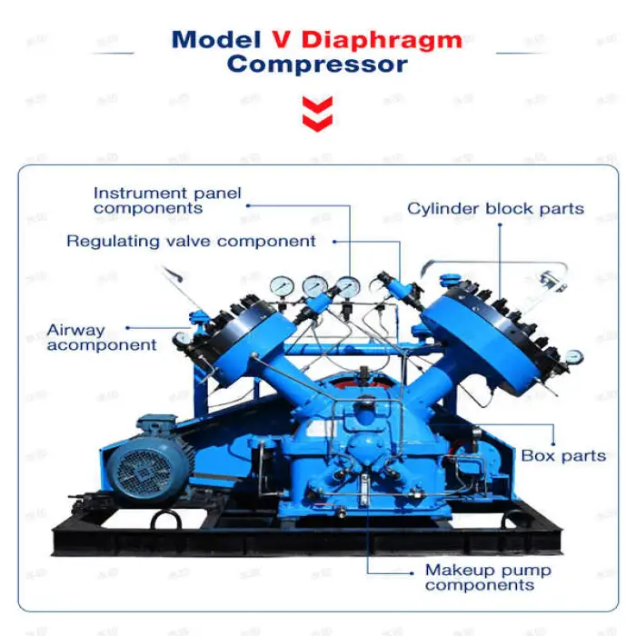 The compressor is configured as a V-shape diaphragm compressor.