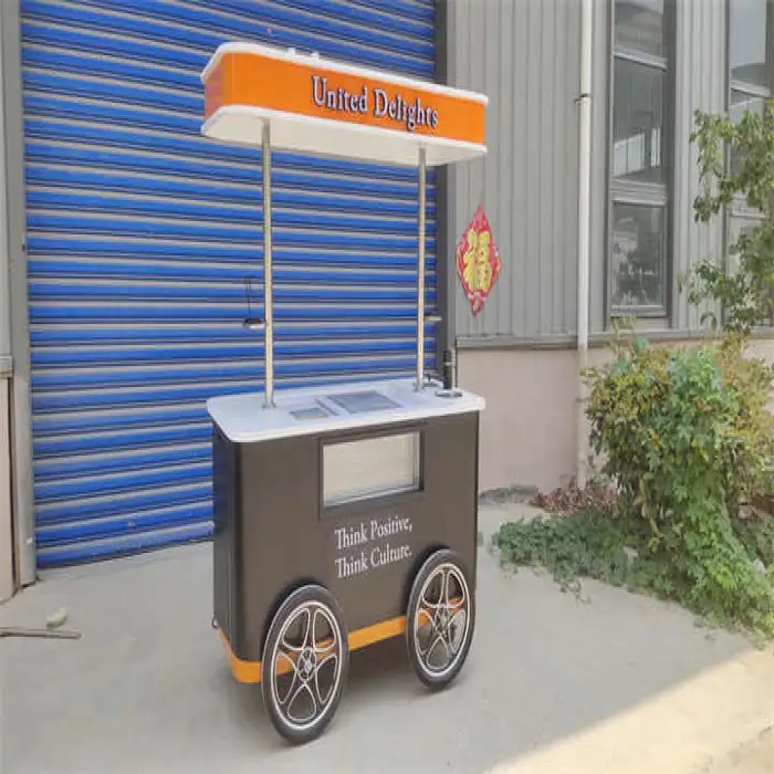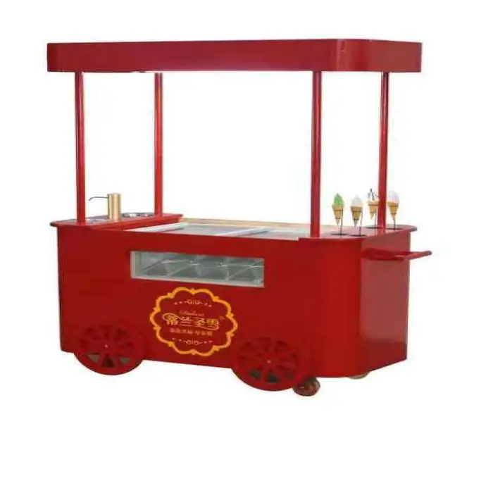 The cart is made from high-quality materials, including milk, corn, and nuts, ensuring durability and quality for serving ice cream.