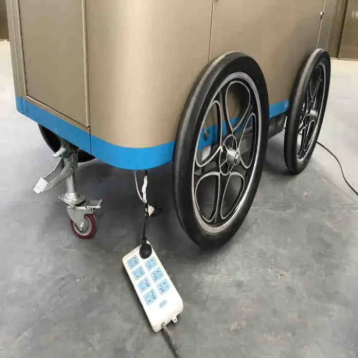 The air cooling system circulates cold air within the cart to maintain the required low temperatures for ice cream and popsicles.
