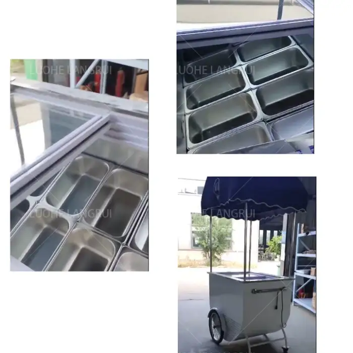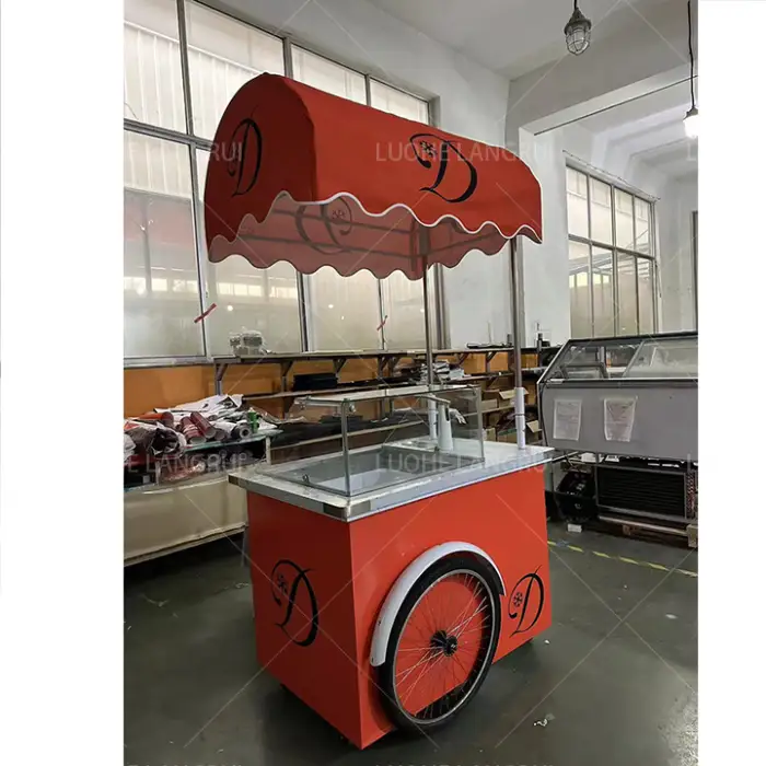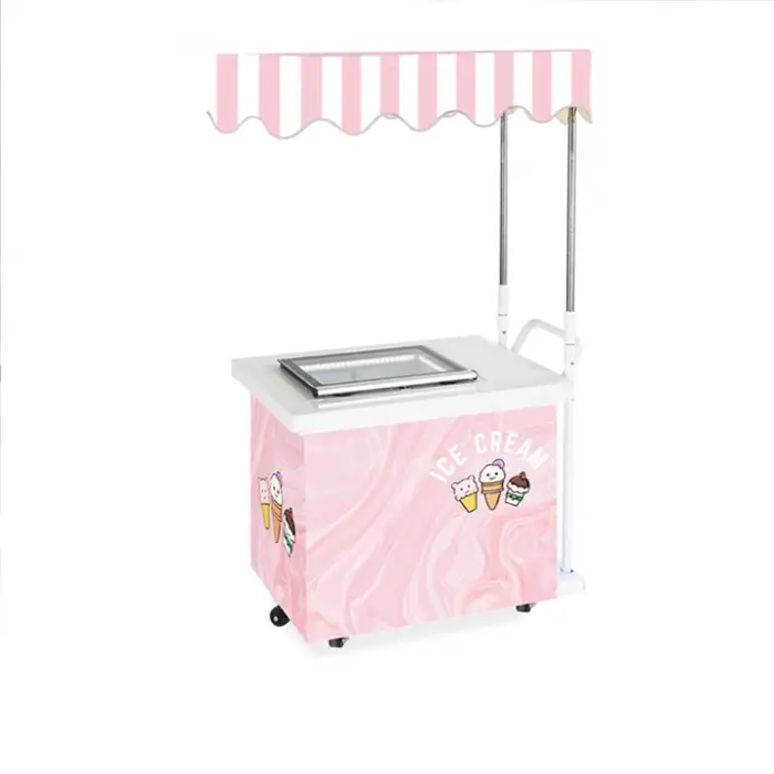 The ice cream cart is made of high-quality stainless steel, ensuring durability and a stylish appearance.