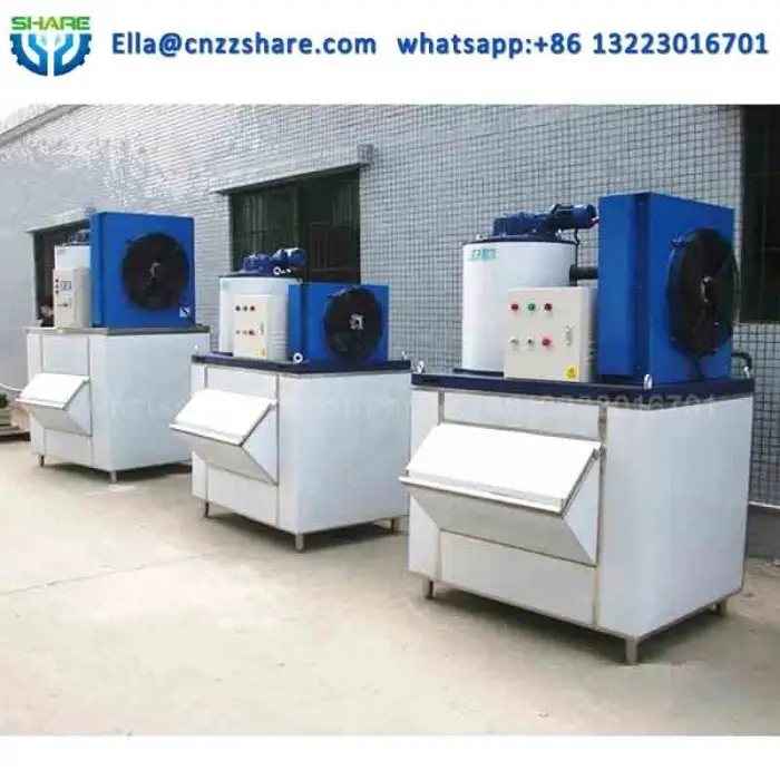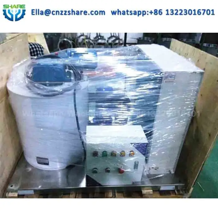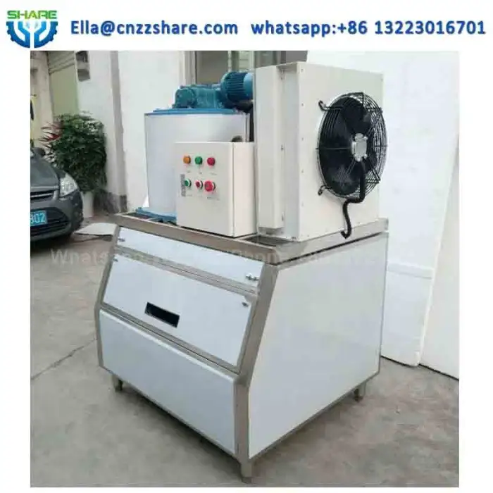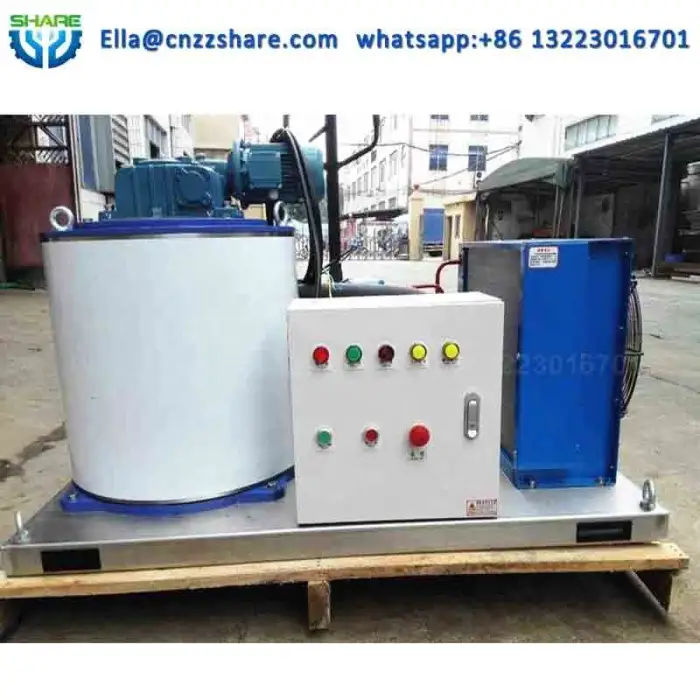 This machine produces high-quality flake ice from seawater, which is ideal for various applications such as seafood preservation and food service.
