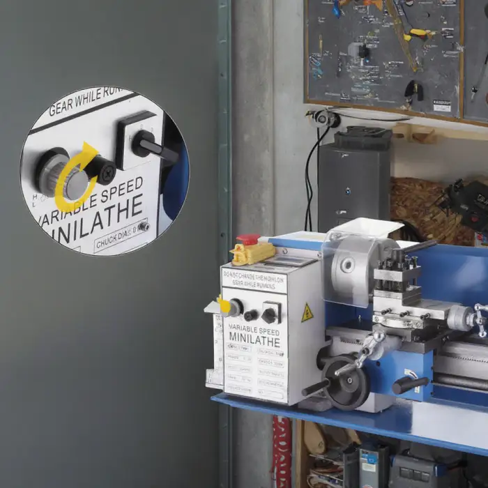 The Industrial CNC Mini Lathe has an infinitely variable spindle speed range from 50 to 2500 RPM.