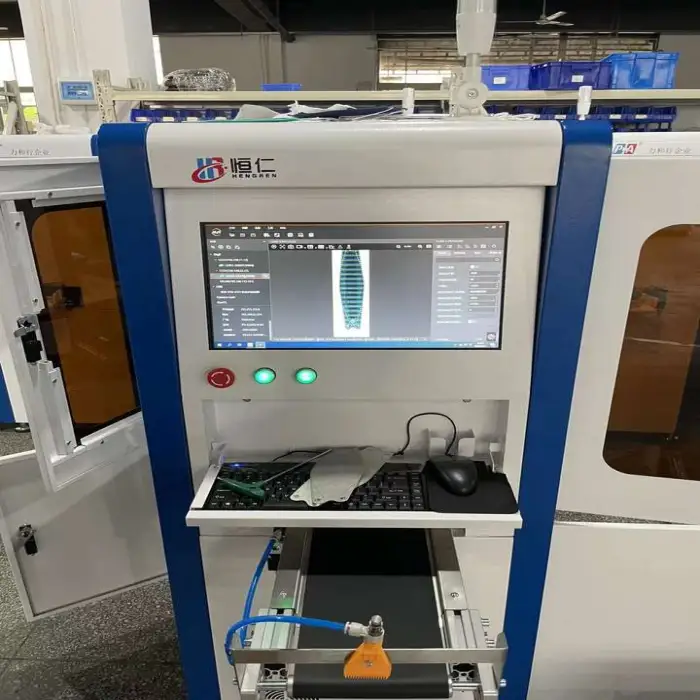 The equipment ensures quality control by utilizing advanced visual inspection technology to detect defects and sort products accurately.