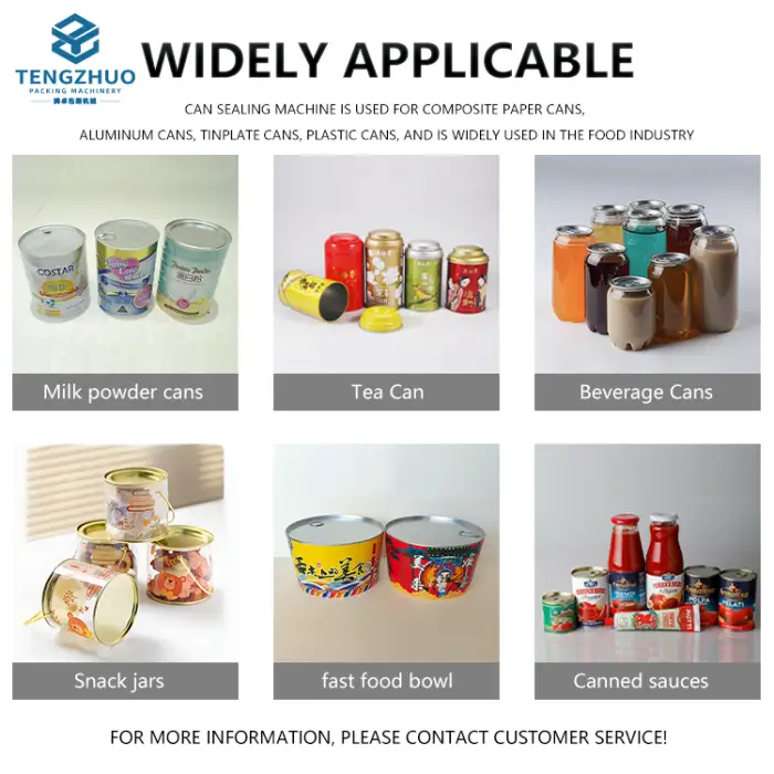 The machine can seal cans with diameters ranging from 30mm to 110mm and heights from 25mm to 220mm.