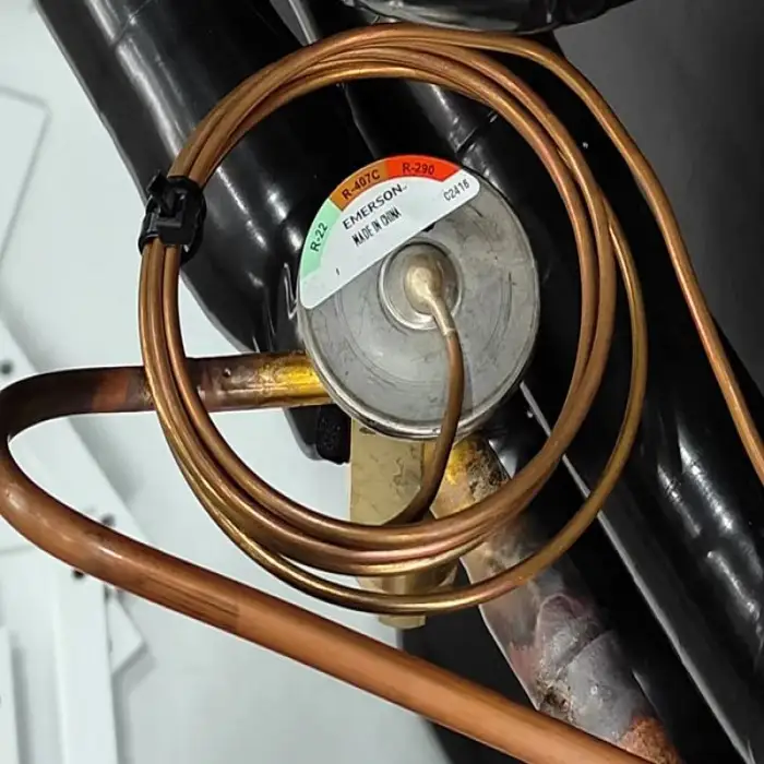 The chiller is compatible with R22, R407c, and R410a refrigerants.