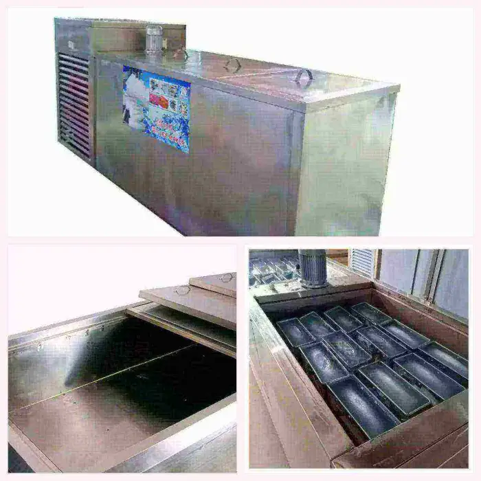The Industrial Ice Making Machine produces ice blocks in various weights, including 5kg, 10kg, 20kg, and 50kg.