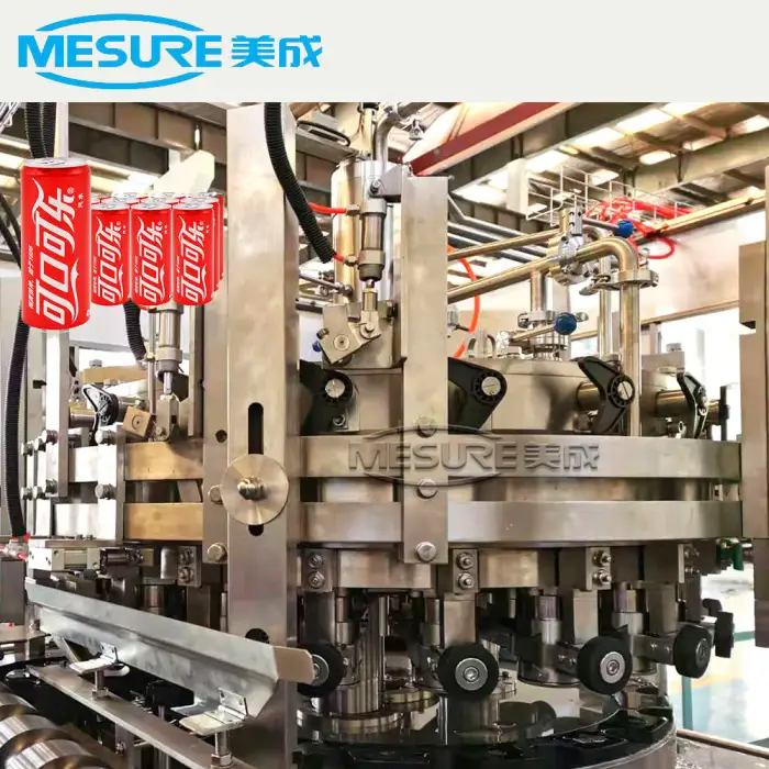 The machine is compatible with metal and plastic cans for packaging.