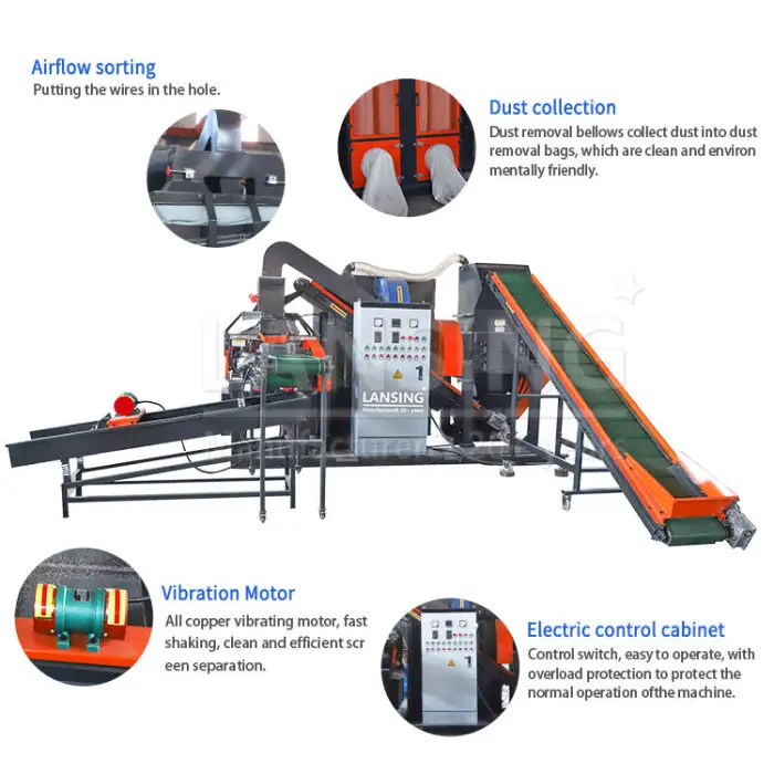 The built-in dust removal equipment is designed to keep the workspace cleaner by effectively capturing and removing dust generated during the recycling process.