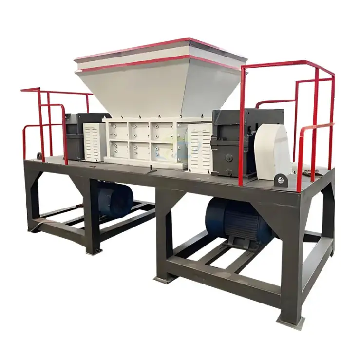 The double shaft design allows for more effective shredding by providing greater cutting force and ensuring that materials are processed evenly.