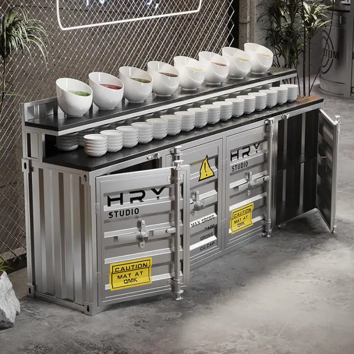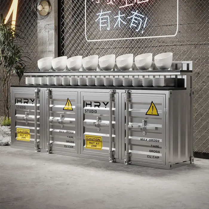 This sideboard is versatile and ideal for hot pot restaurants, bars, lounges, cafes, and any establishment that requires stylish and practical storage solutions.