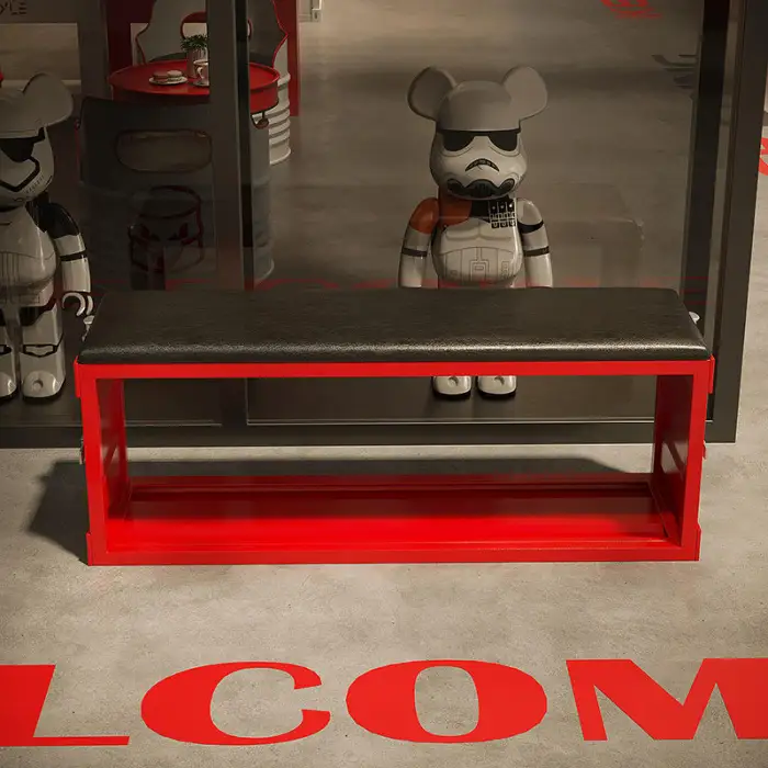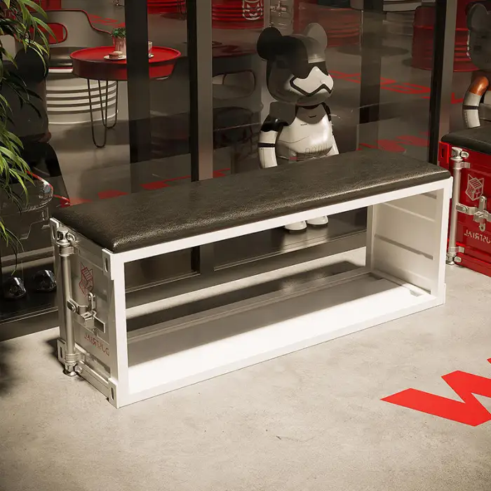 The Industrial Style Shoe Changing Stool complements modern, minimalist, and industrial decor styles due to its unique design.