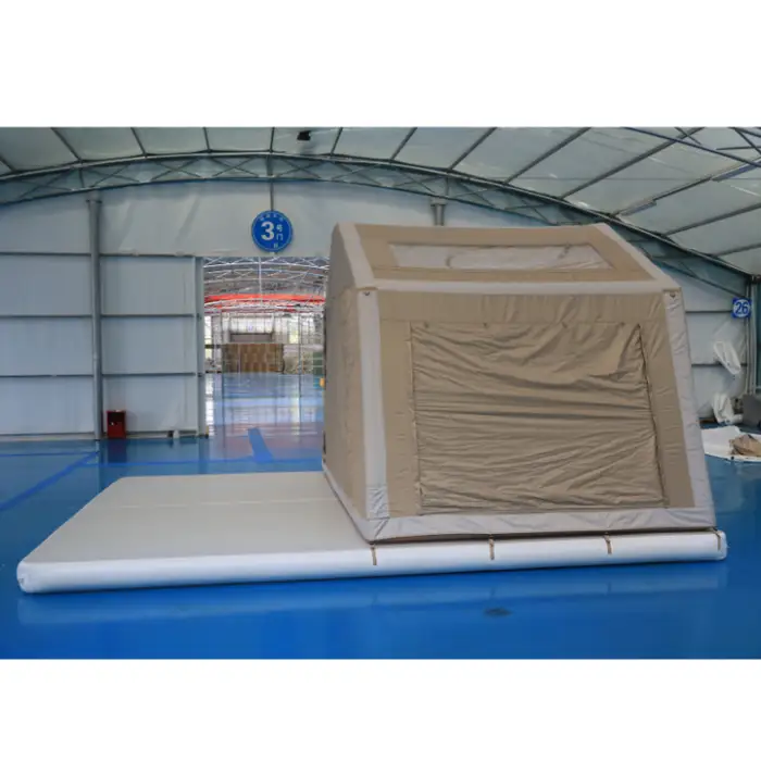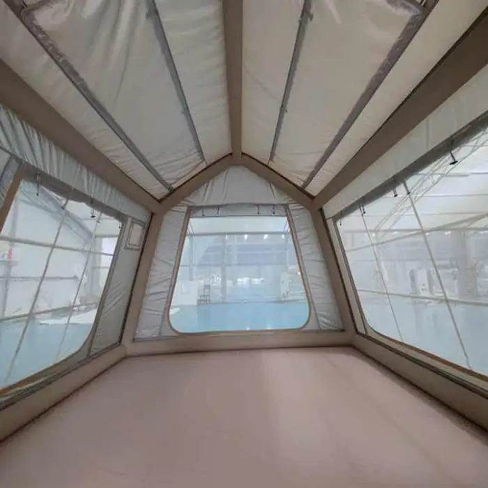 The Inflatable Camping Tent comes with a pump for easy setup. Simply inflate the tent using the pump, and it will automatically open, allowing you to set it up in minutes.