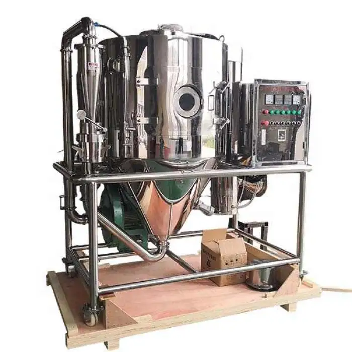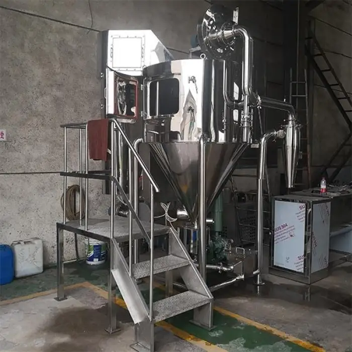 The primary purpose of this machine is to efficiently transform liquid products, such as instant coffee, milk, and other beverages, into fine powders using advanced spray drying technology.