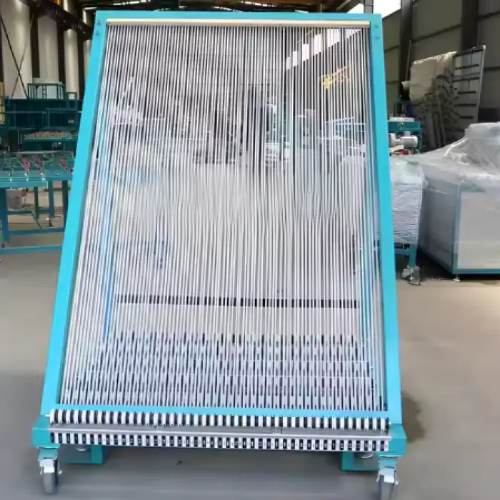 The Insulating Glass Harp Rack Trolley has a loading capacity of 1000 kg, making it suitable for heavy glass loads.