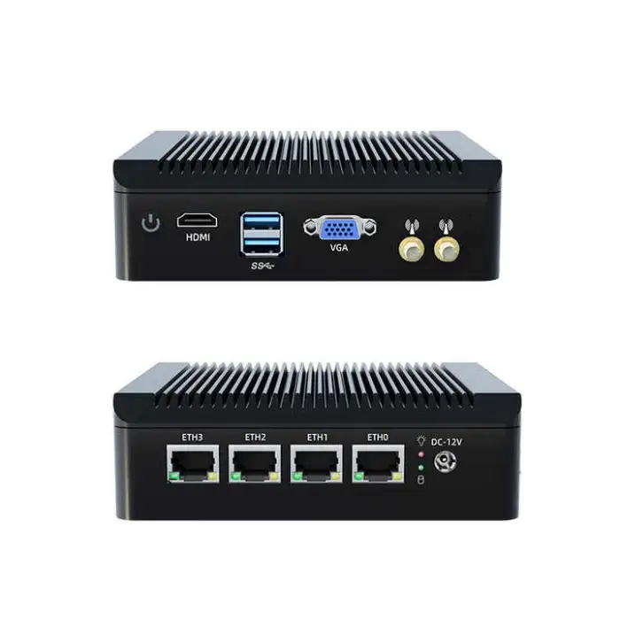 This mini PC is compatible with various operating systems including Windows 7, Windows 10, Linux, PfSense, OpenWRT, and OPNsense.