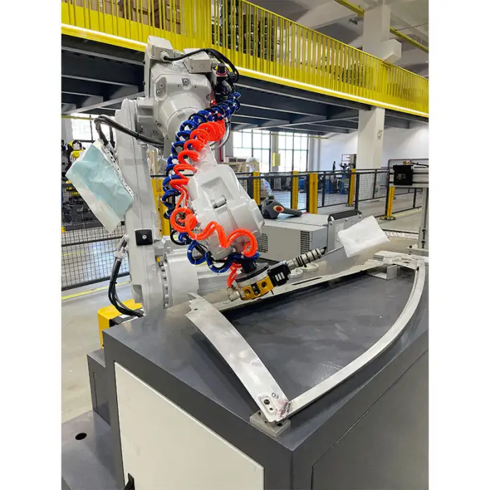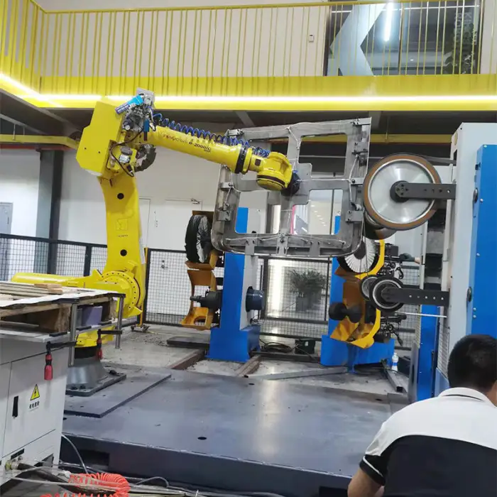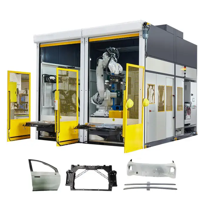Yes, the machine includes a robot control cabinet and a robot teach pendant for easy operation and programming.
