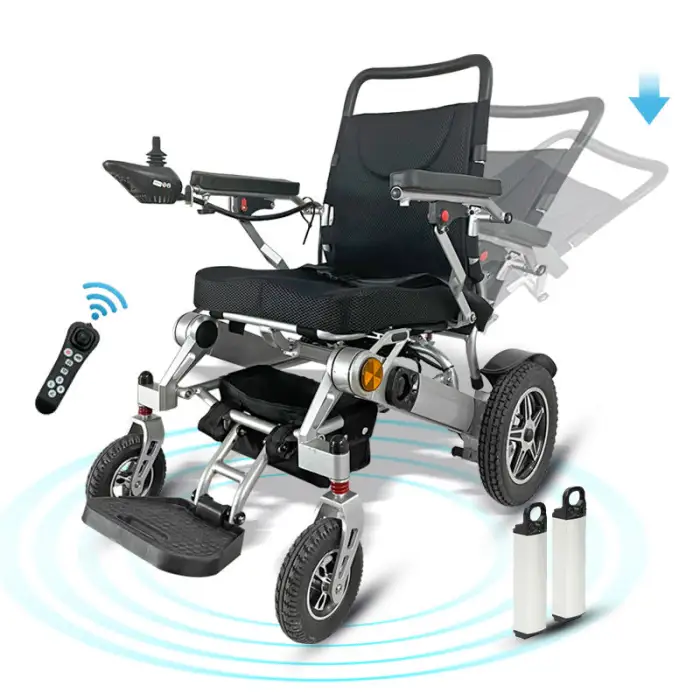 The wheelchair features a fully automatic folding design, which allows it to be easily folded with the push of a button or using the remote control for convenient storage.