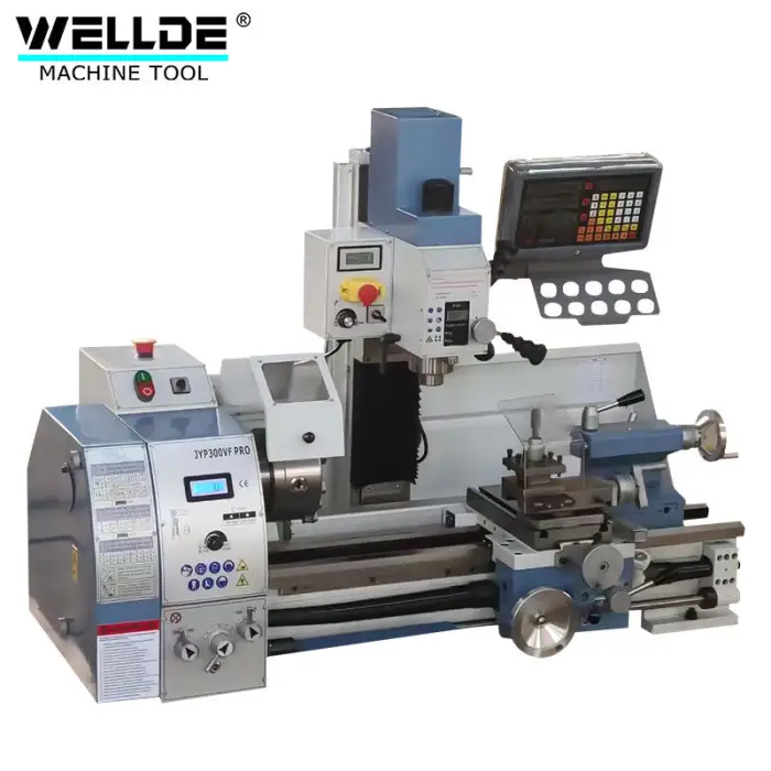 The JYP300VF combines a lathe, milling machine, and drilling machine into one compact design, making it versatile for various machining tasks.