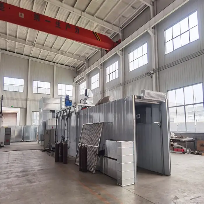 The machine is suitable for industrial coating of metal parts, automotive painting, furniture finishing, appliance manufacturing, and coating of construction materials.