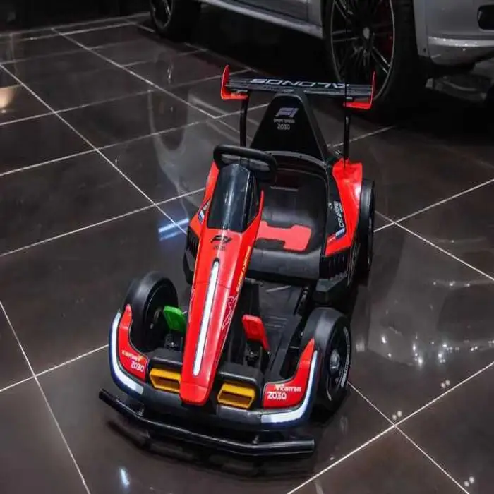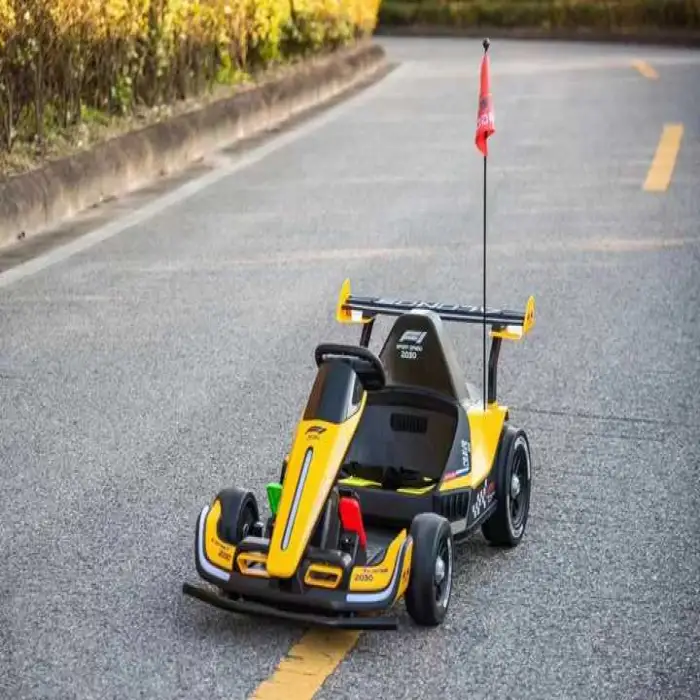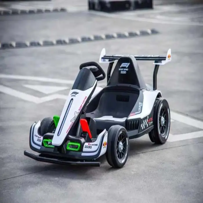 The Kids Go Cart uses a 12V 7AH rechargeable battery.